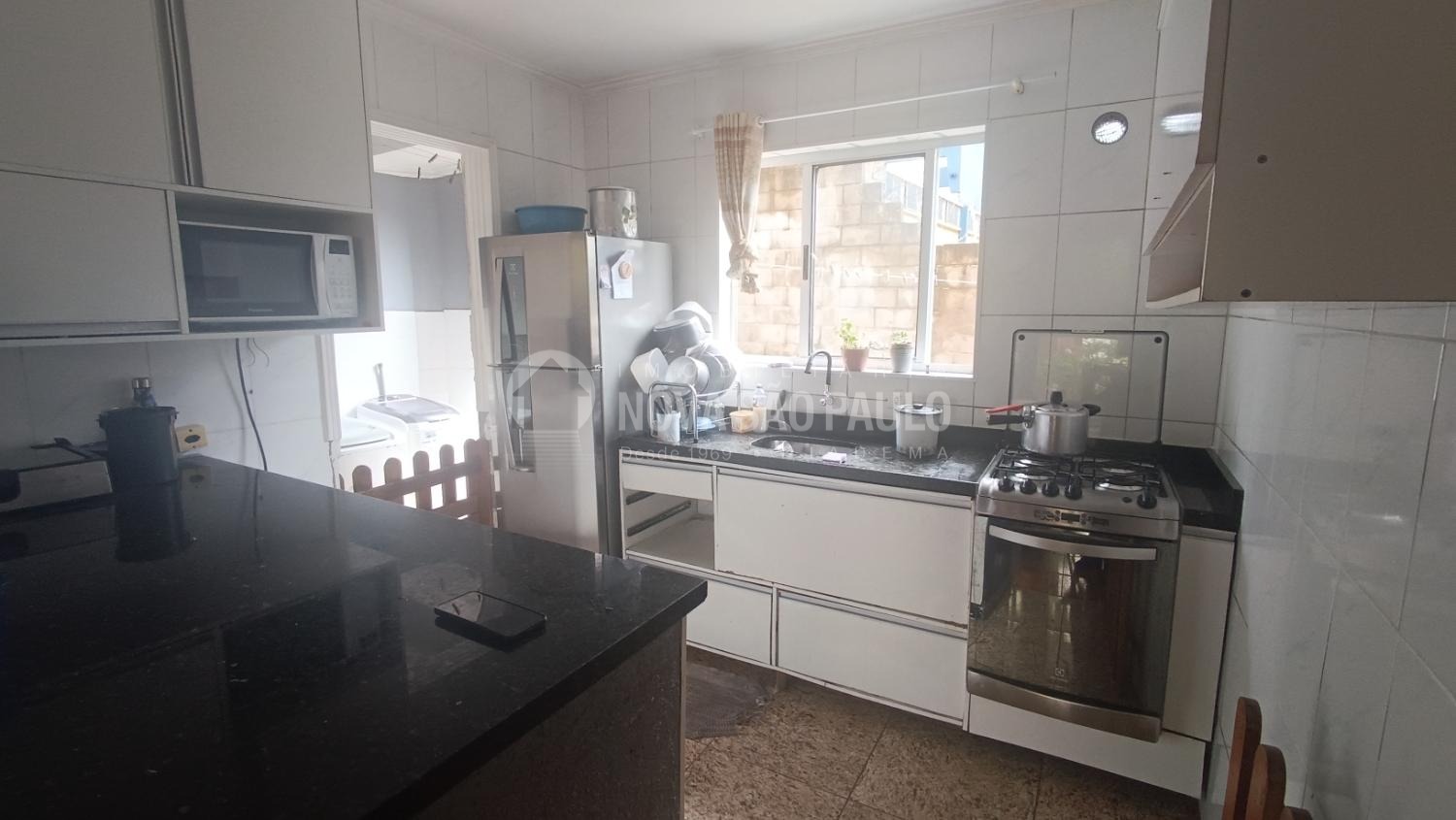 O condomínio conta com portaria 24 horas, salão de festas e churrasqueira.