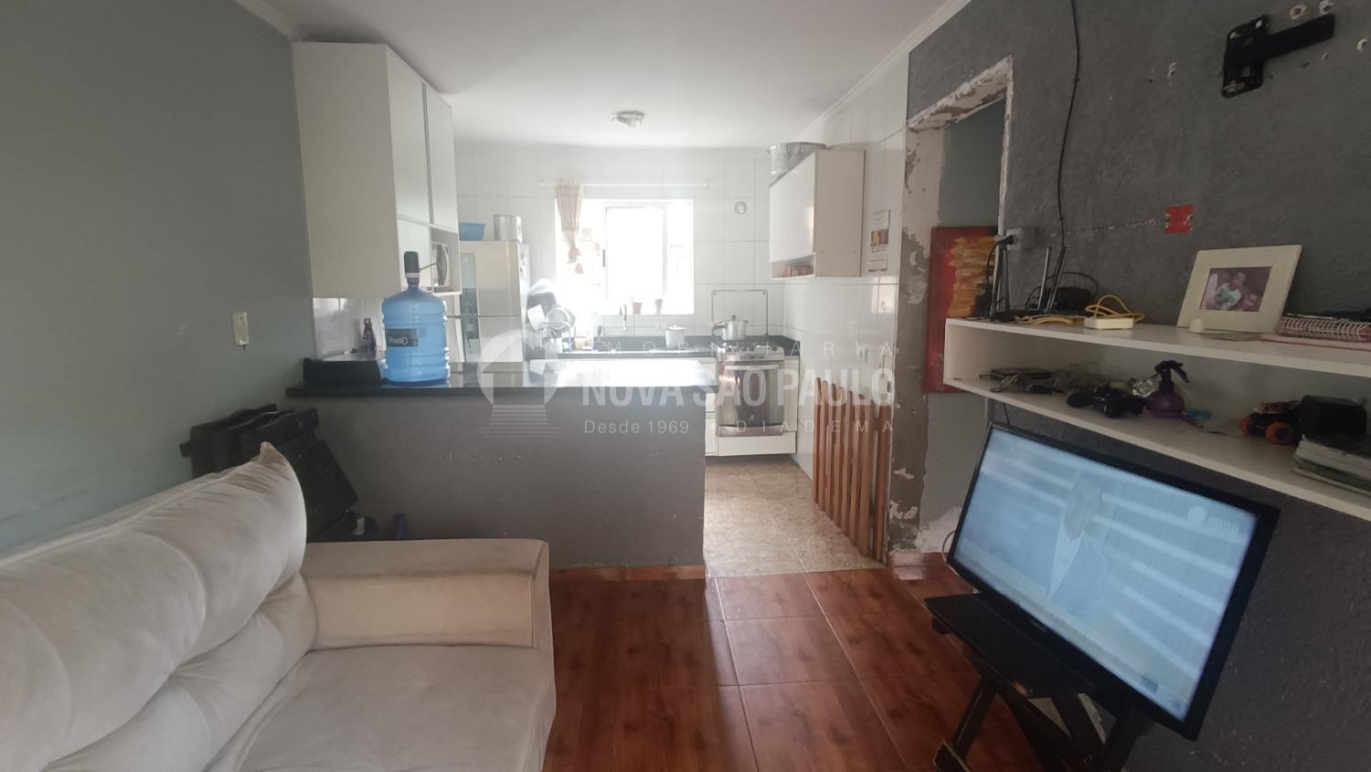 São dois dormitórios, sala, cozinha, banheiro, área de serviços e quintal privativo.