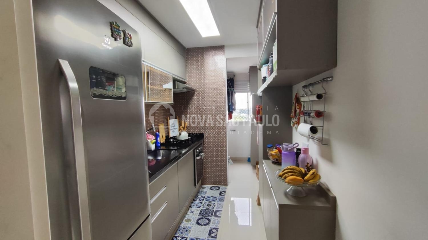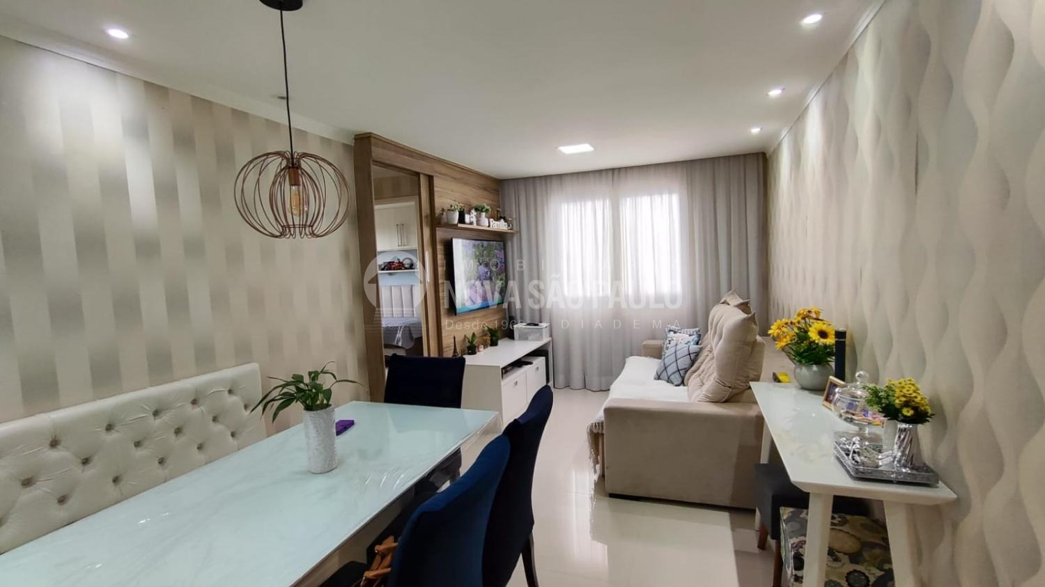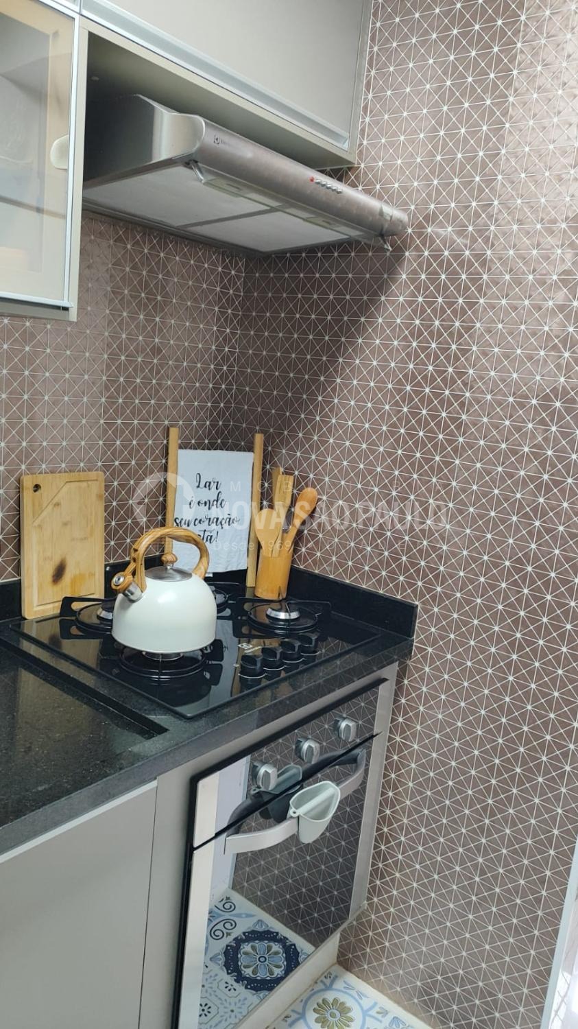 São dois dormitórios com armários, cozinha planejada com cook top, forno e depurado, sala com mesa, cadeiras e canto alemão, uma vaga de garagem fixa e coberta.