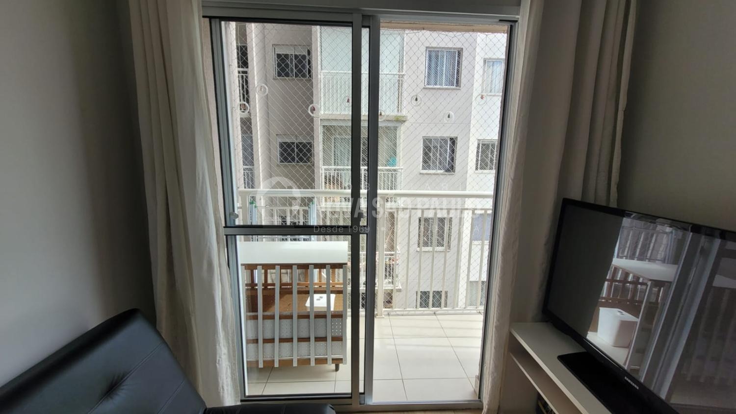 Com dois dormitórios, sala com sacada, cozinha planejada, banheiro, área de serviços e uma vaga de garagem.