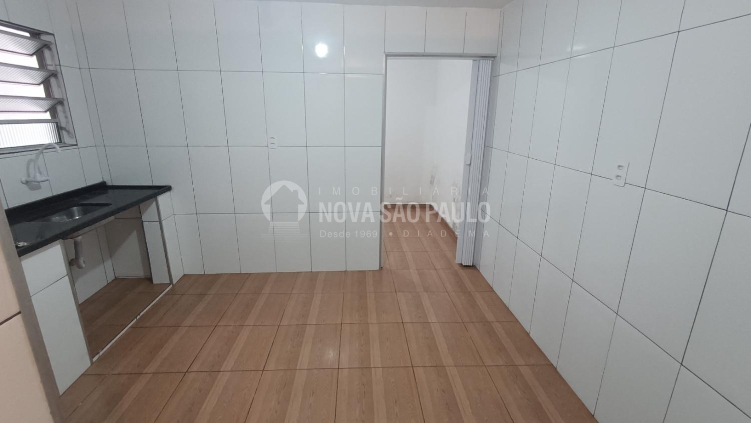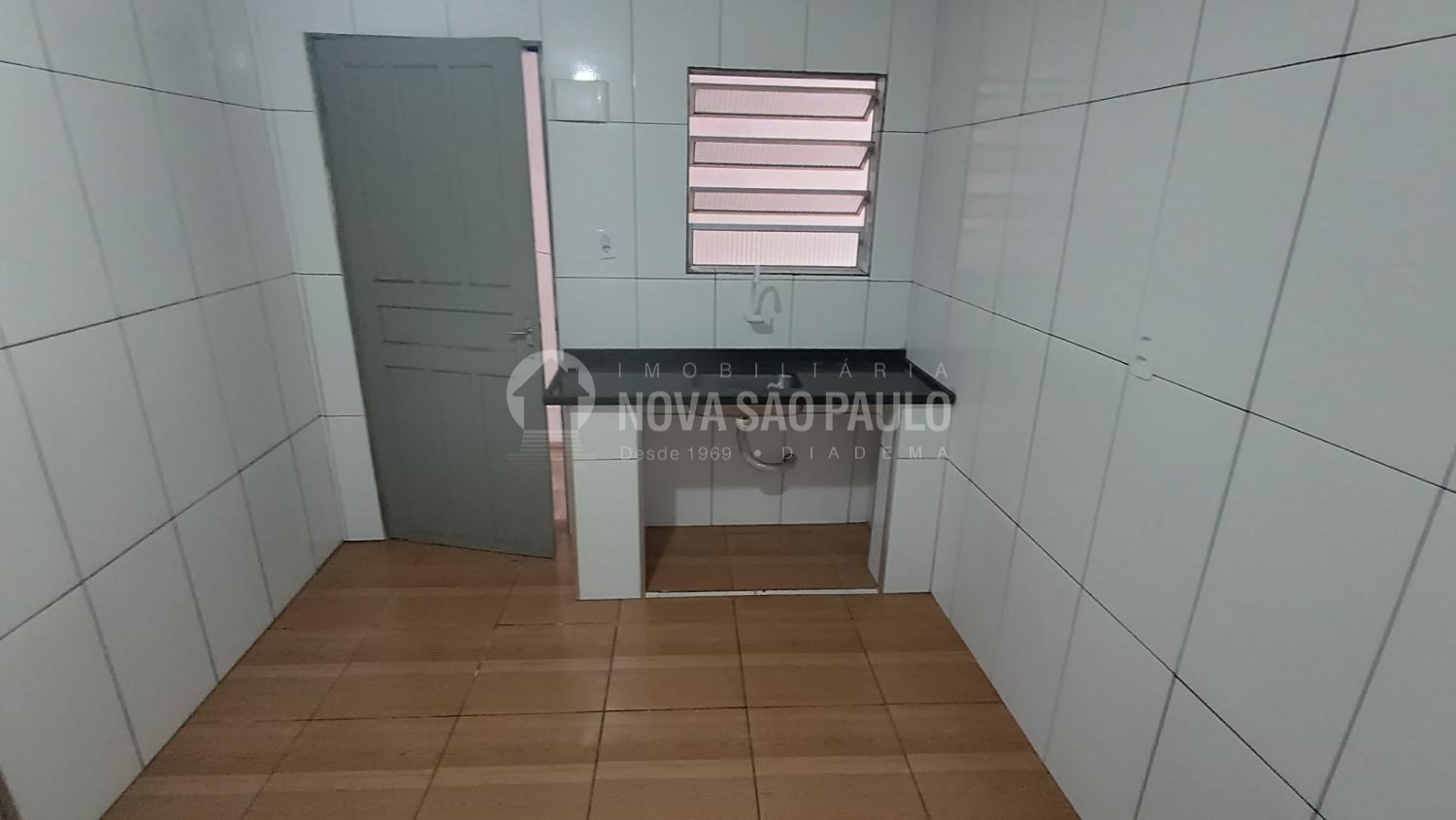 Casa térrea com um dormitório, cozinha, banheiro e área de serviços.