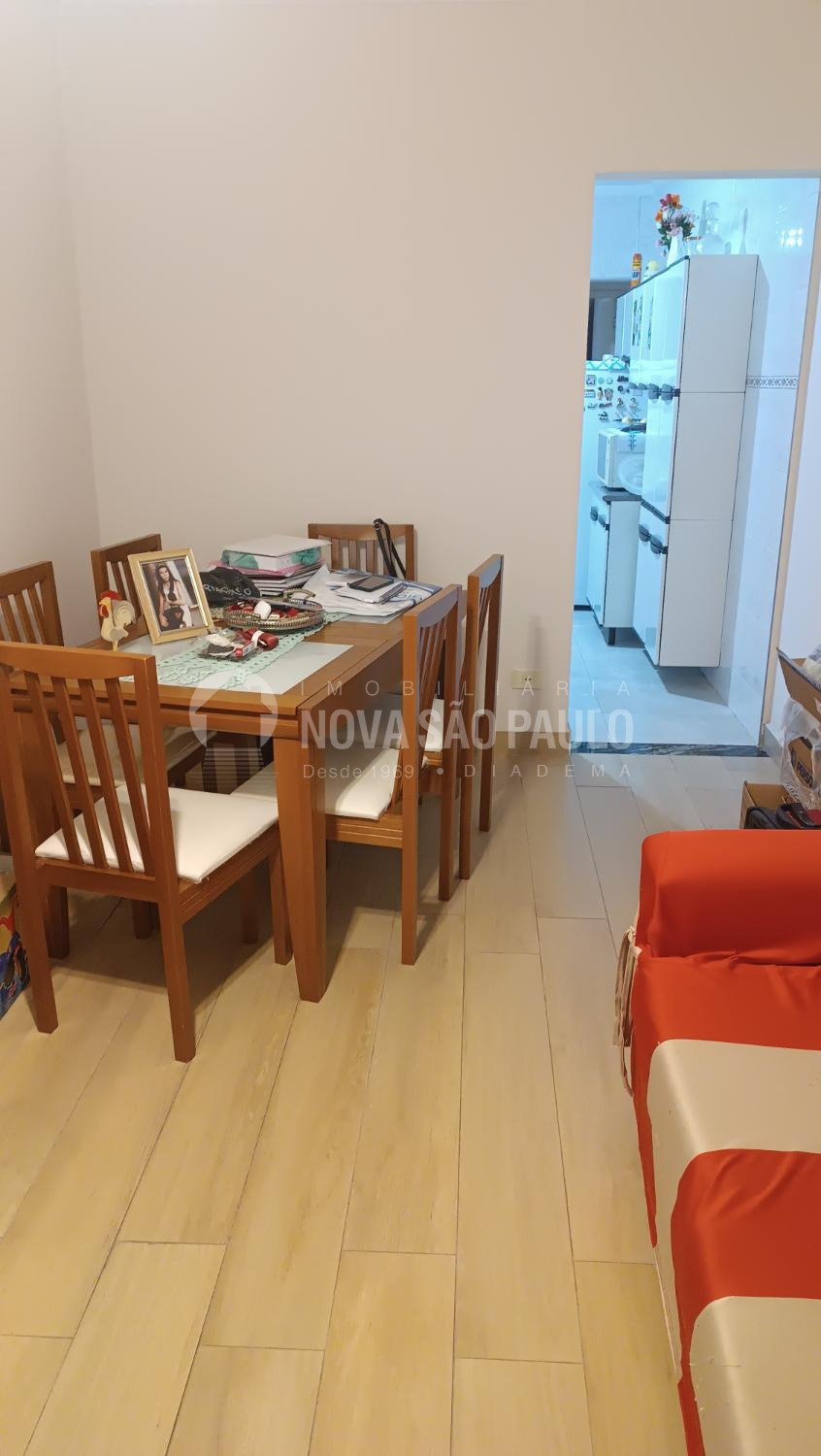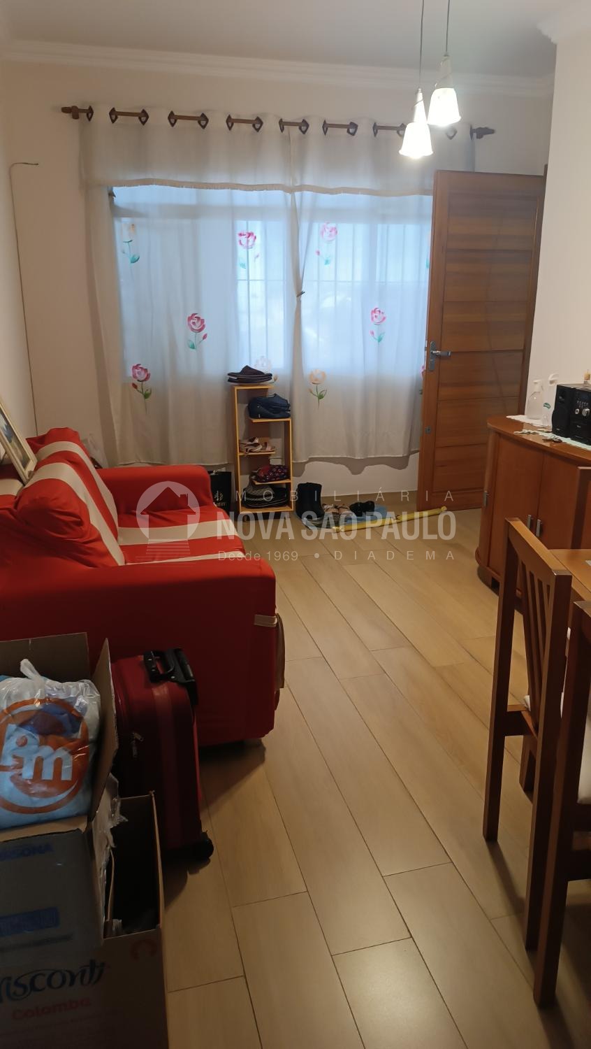 Casa térrea para locação, com dois dormitórios, sala, cozinha, banheiro, área de serviços e uma vaga de garagem.